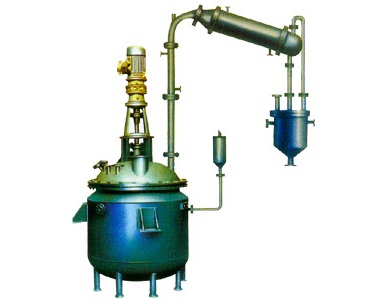 1、反應鍋  2、豎式分餾柱  3、豎式冷凝器  4、臥式冷凝器